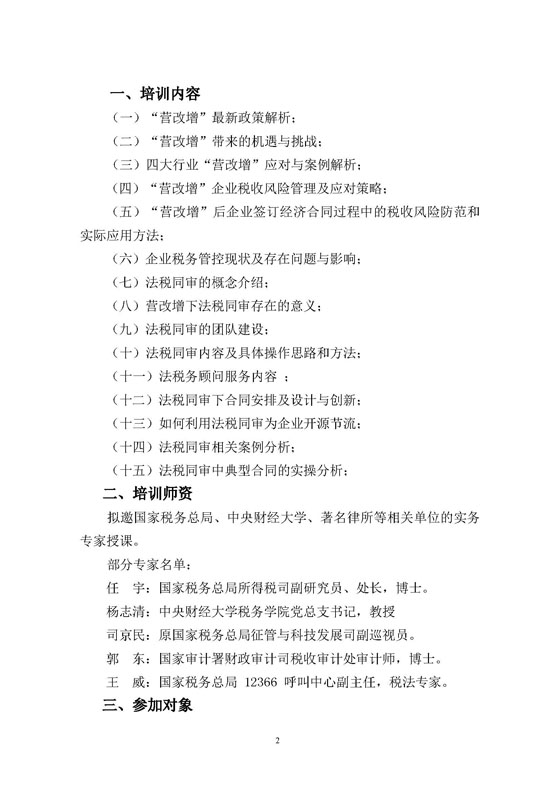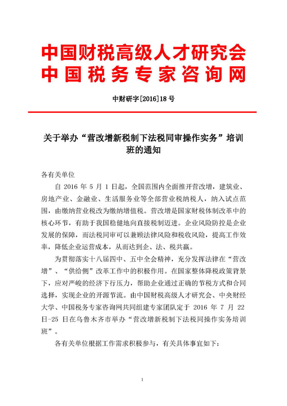 关于举办“营改增新税制下法税同审操作实务”培训班的通知