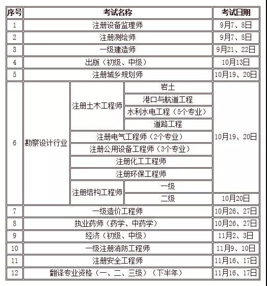 据介绍,试点时间为2019年6月至11月。试点范围为2019年下半年由人力资源和社会保障部人事考试中心负责组织实施的全国专业技术人员资格考试,共12项,包括注册设备监理师、注册测绘师、一级建造师、出版(初级、中级)、注册城乡规划师、勘察设计工程师、一级造价工程师、执业药师(药学、中药学)、经济(初级、中级)、一级注册消防工程师、注册安全工程师、翻译专业资格(一、二、三级)(下半年)。